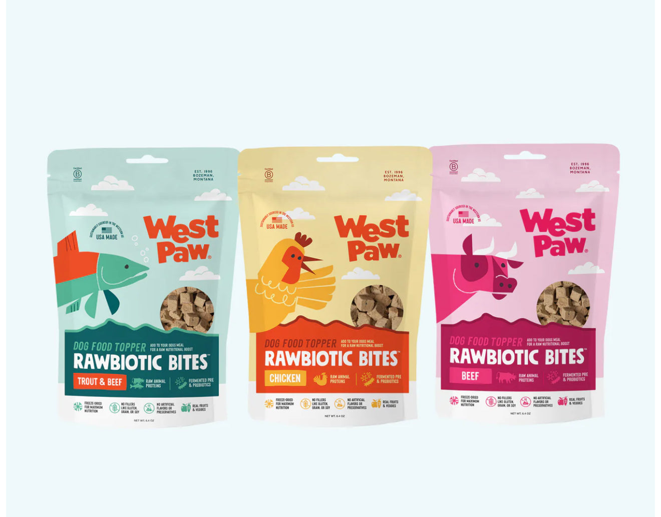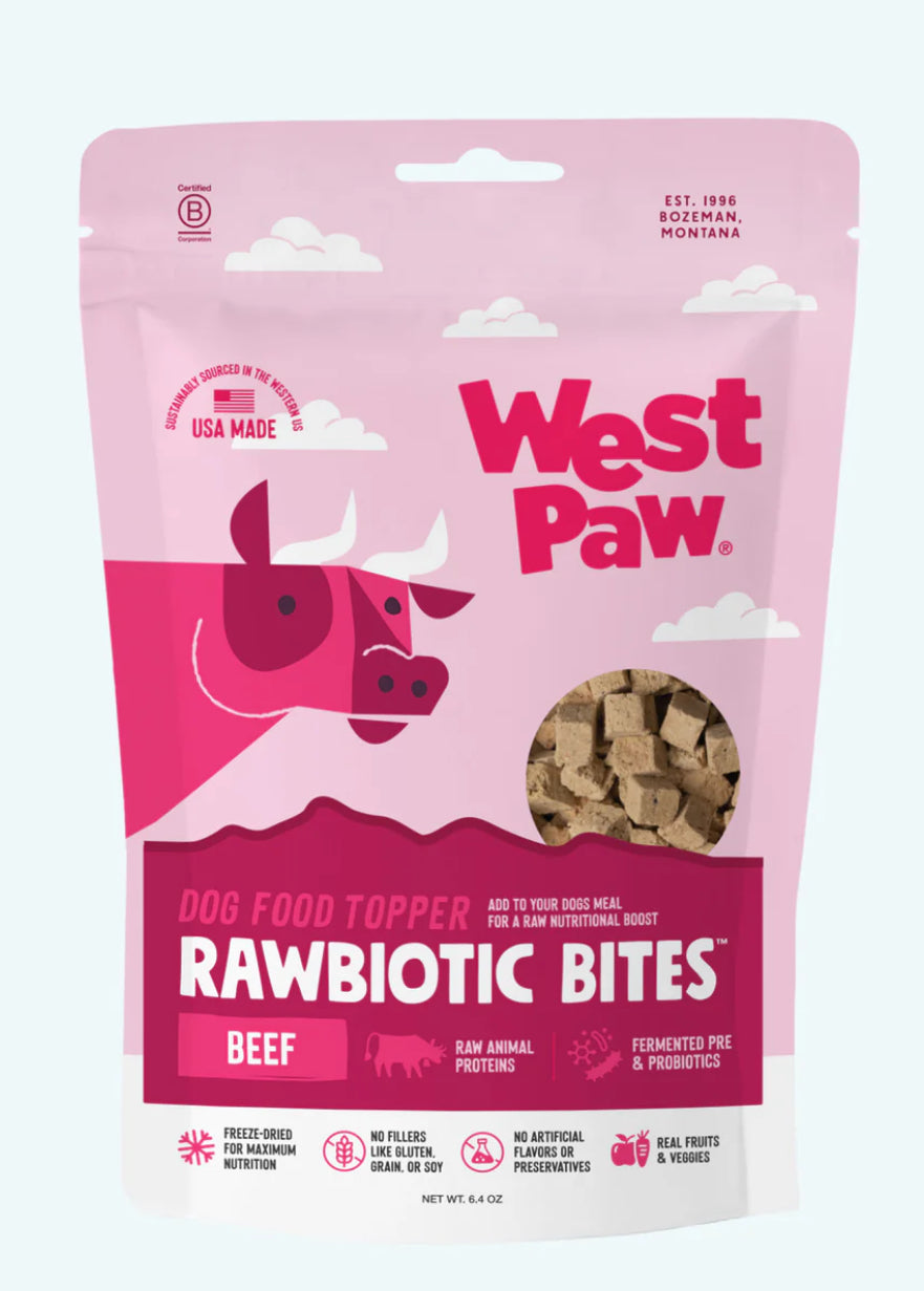 Feeding your dog the same kibble every day can feel a little… meh. Rawbiotic Bites™ add a nutritional boost without the commitment of raw food. They’re packed with high-quality raw animal proteins, fermented probiotics, and real fruits and veggies. No junky ingredients — just a well-fed, healthier, happier best friend.